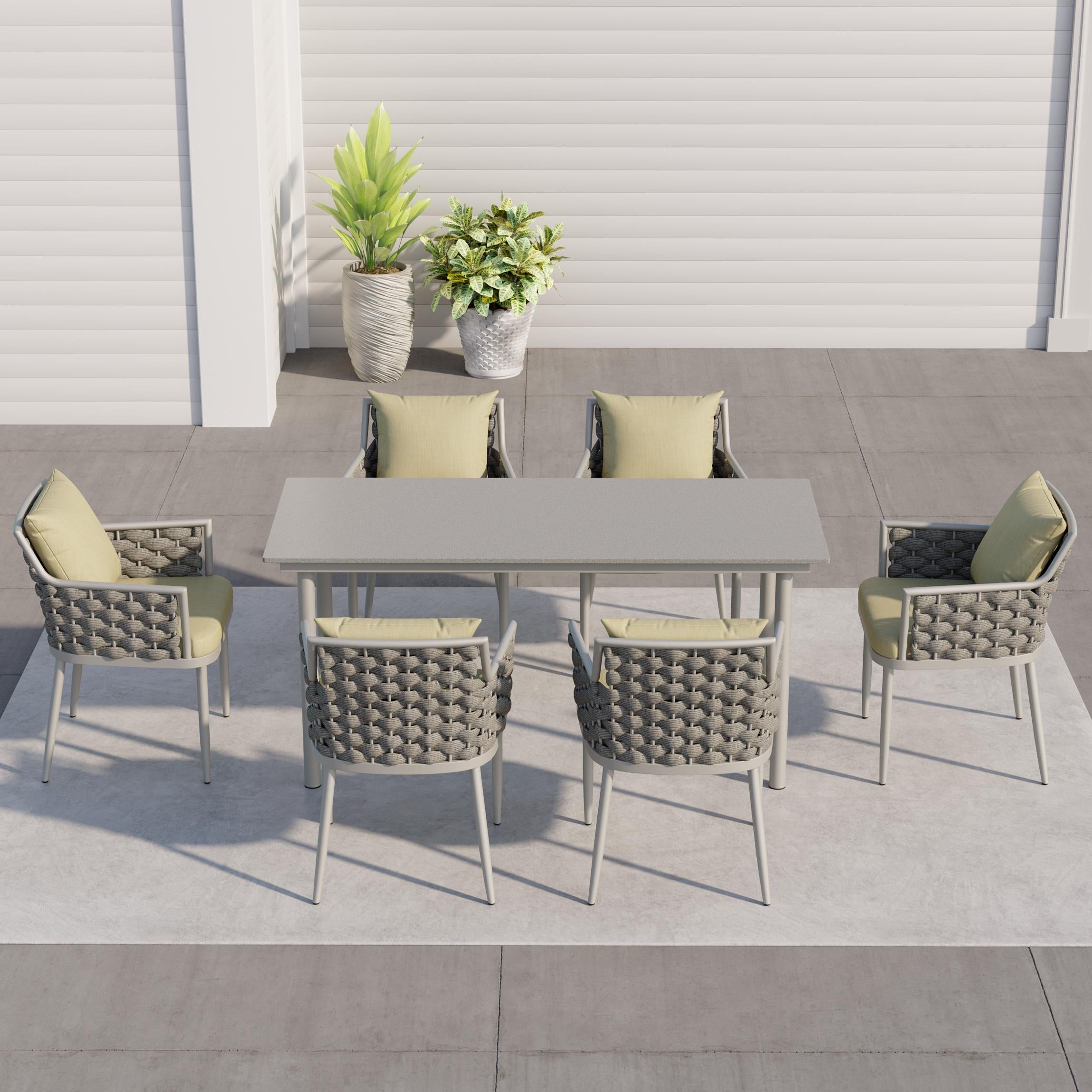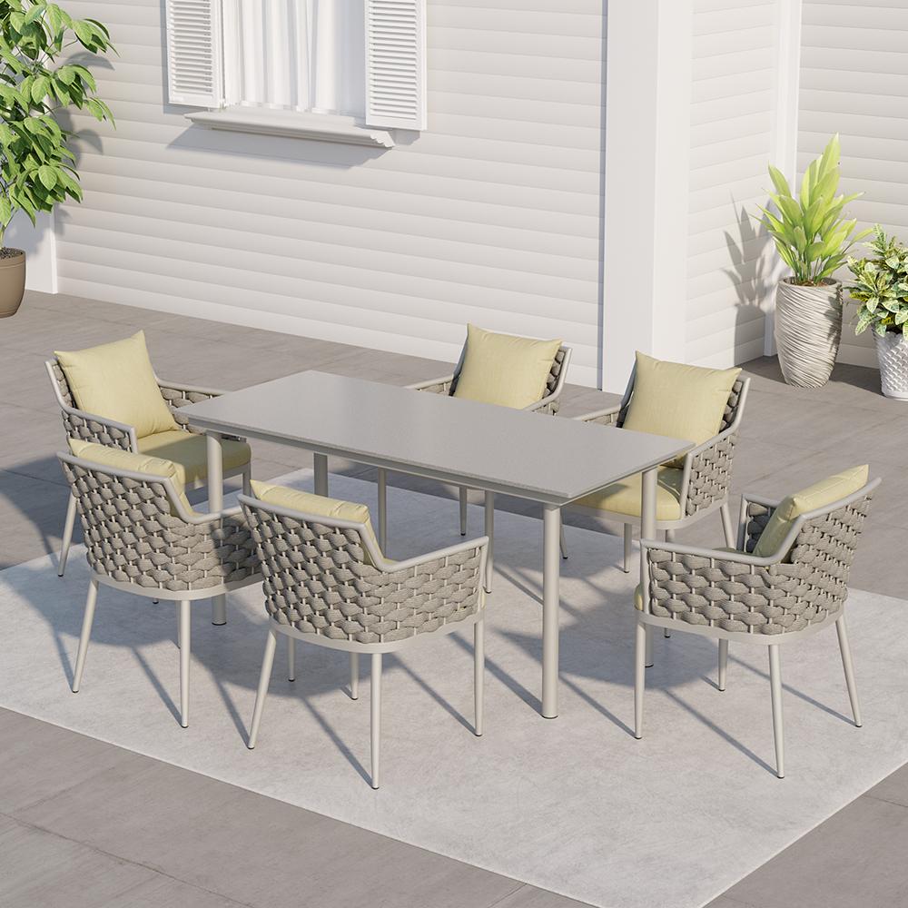 7 Pieces Outdoor Dining Set For 6 with Rectangle Table & Rope Woven Armchair in Natural - Natural