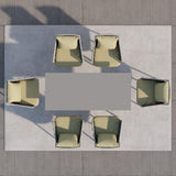 7 Pieces Modern Outdoor Dining Set Rectangle Marble Top Table Chair Gray