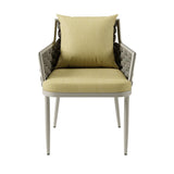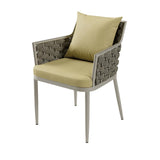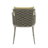This outdoor dining set is the perfect addition to your outdoor space. Made with high-quality aluminum, it is durable and strong, ensuring that it lasts through all types of weather. The natural-textured rope woven and comfortable cushion provide added style...