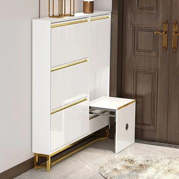Shoes Storage Furniture Storage Cabinets Storage White&Gold 3-Door 9 Pairs Shoes