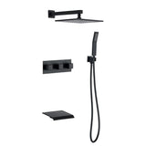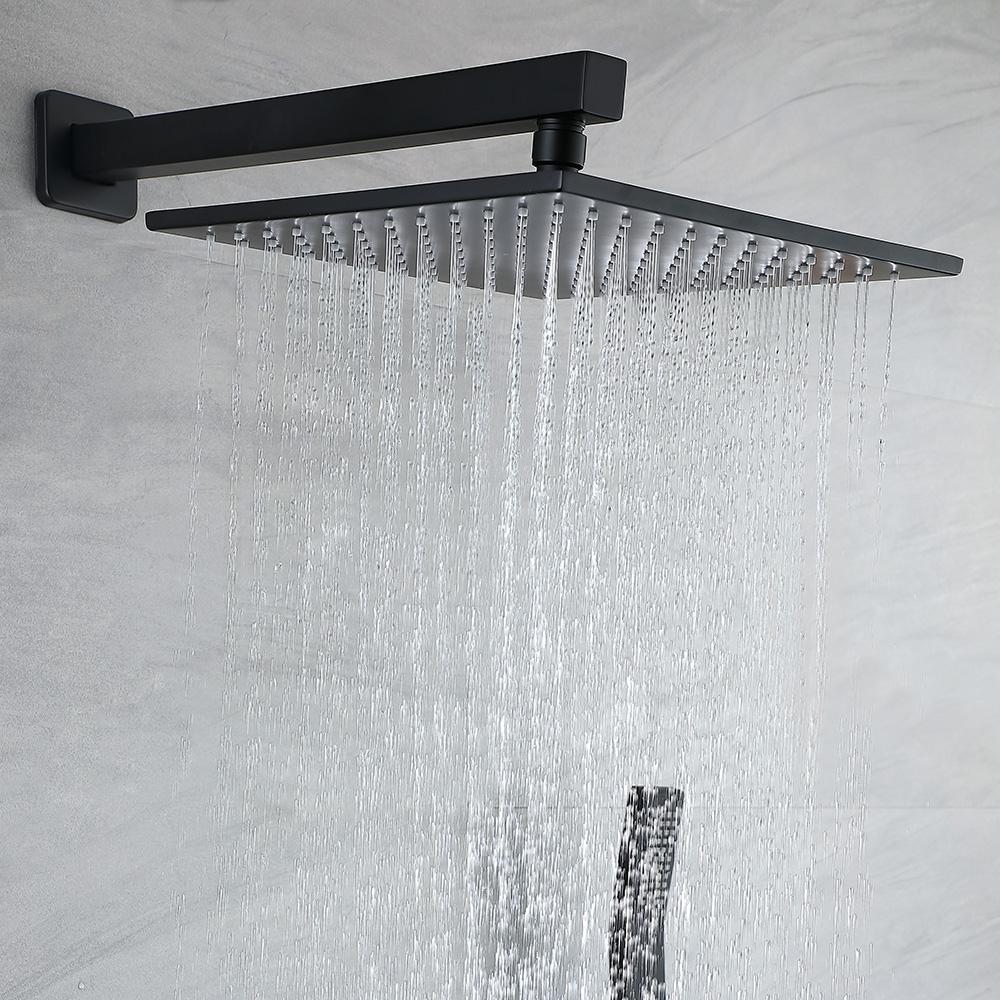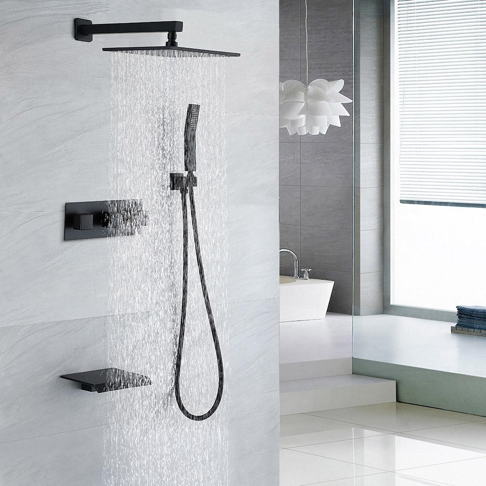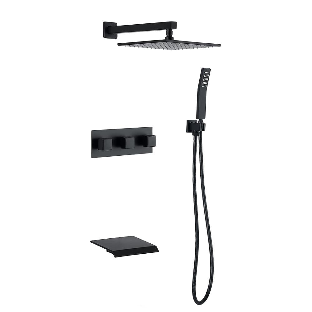 Transform your shower experience with this chic, stylish rainfall shower system. With simple, crisp lines and right angles, this rainfall shower system brings a luxurious modern charisma. Featuring a square rain shower head, it delivers a wide range of soft rain spray to fresh your body and mind. The flexible hand shower allows you to take care of every inch of the body, and bathes your children and pets with great convenience. Enjoying a waterfall spout, water gently cascades into the tub quickly and creates an amazing natural beauty. Constructed from solid brass with a refined finish, it assures timeless elegance through daily use. A perfect addition for your bathroom!