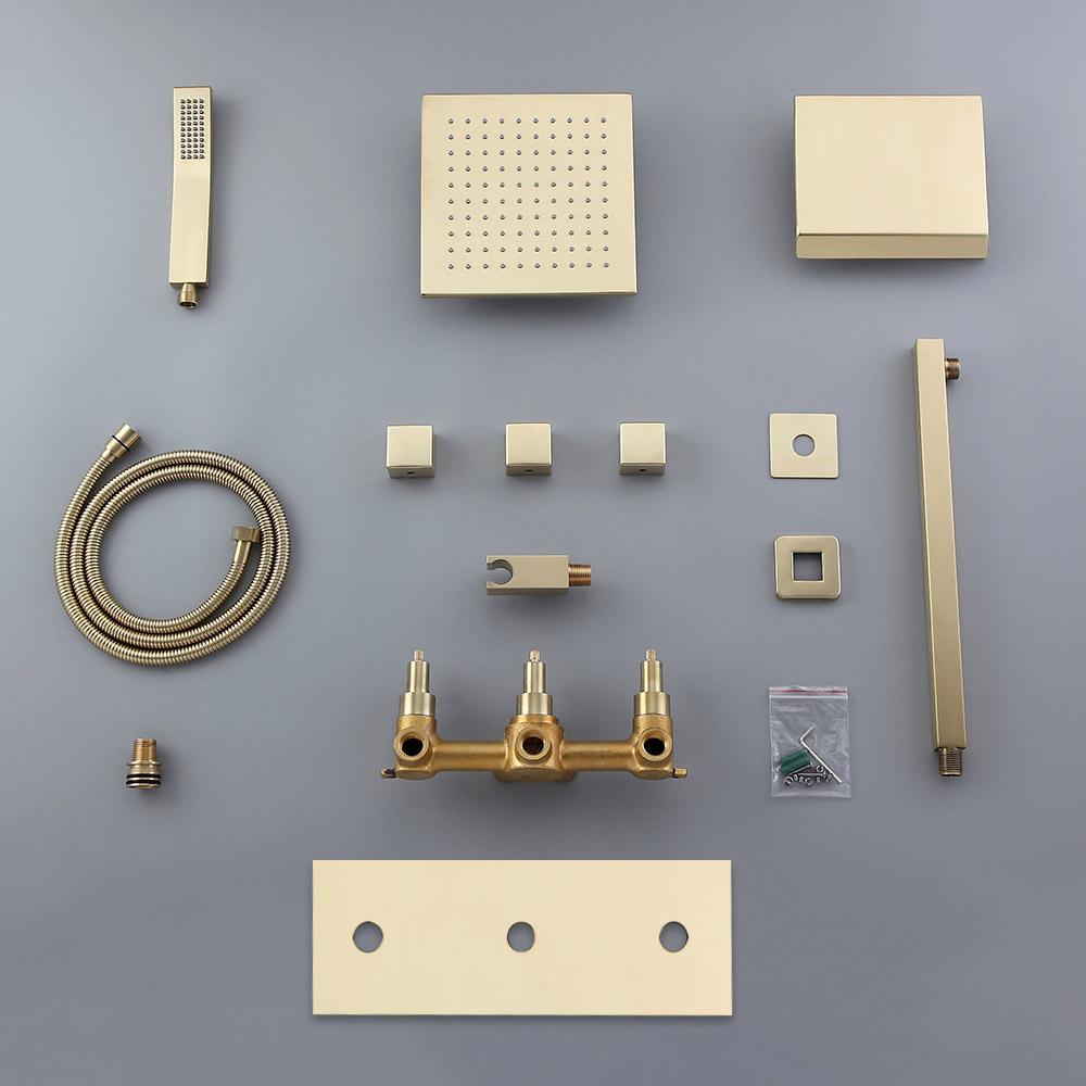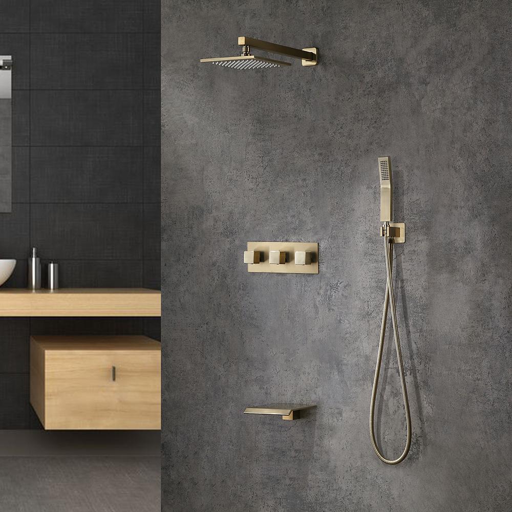 Wall-Mounted 10" Shower System in Brushed Gold with Tub Spout Solid Brass