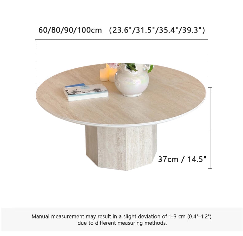 WEHOMZ Japandi Round Coffee Table - Beige Travertine & Sintered Stone Options