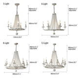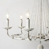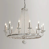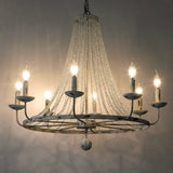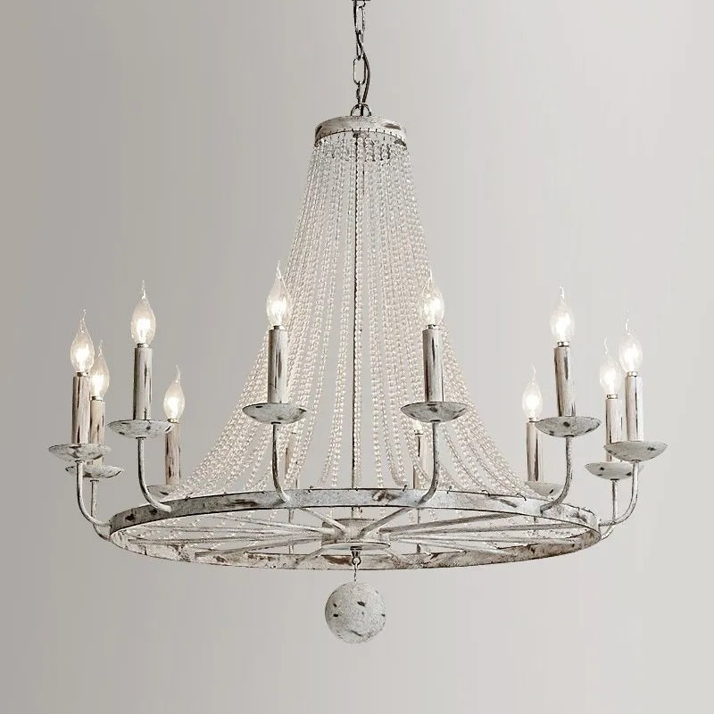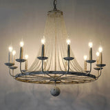 Pena Rustic Candle-Shaped 12-Light Crystal Bead Strands Metal Wheel Chandelier
