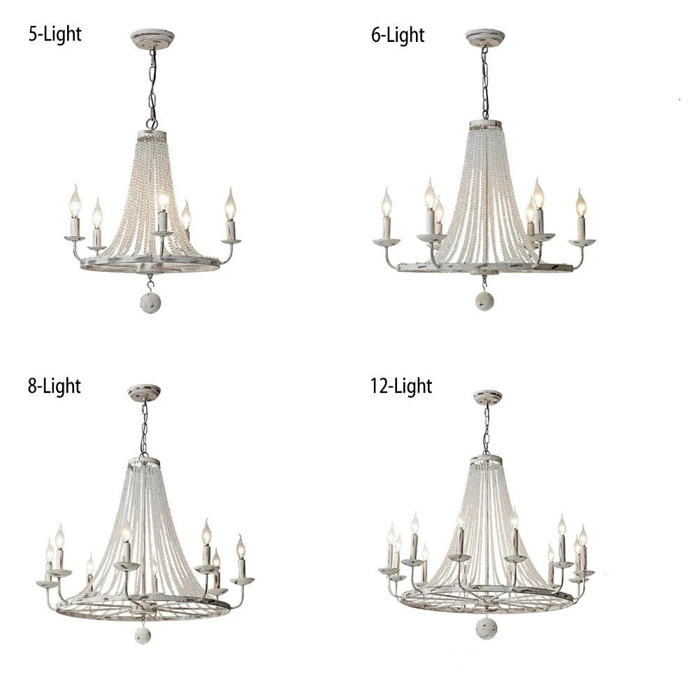 This large candelabra chandelier would be a great glam addition to your home. A perfect blend of sparkling crystal beads and distressed white finish makes this creative design not only suit for modern style but also for vintage interiors. Ball finial hanging from iron wheel draws the look together and adds the perfect finishing touch. Available in the 12-light design, it will cast a shining, pleasant glow in living rooms, dining rooms, bedrooms, kitchens and more.