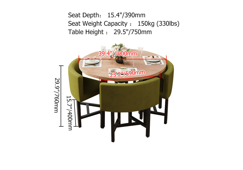 40" Round Wooden 4 Seater Dining Table Set Yellow Upholstered Chairs for Nook Balcony