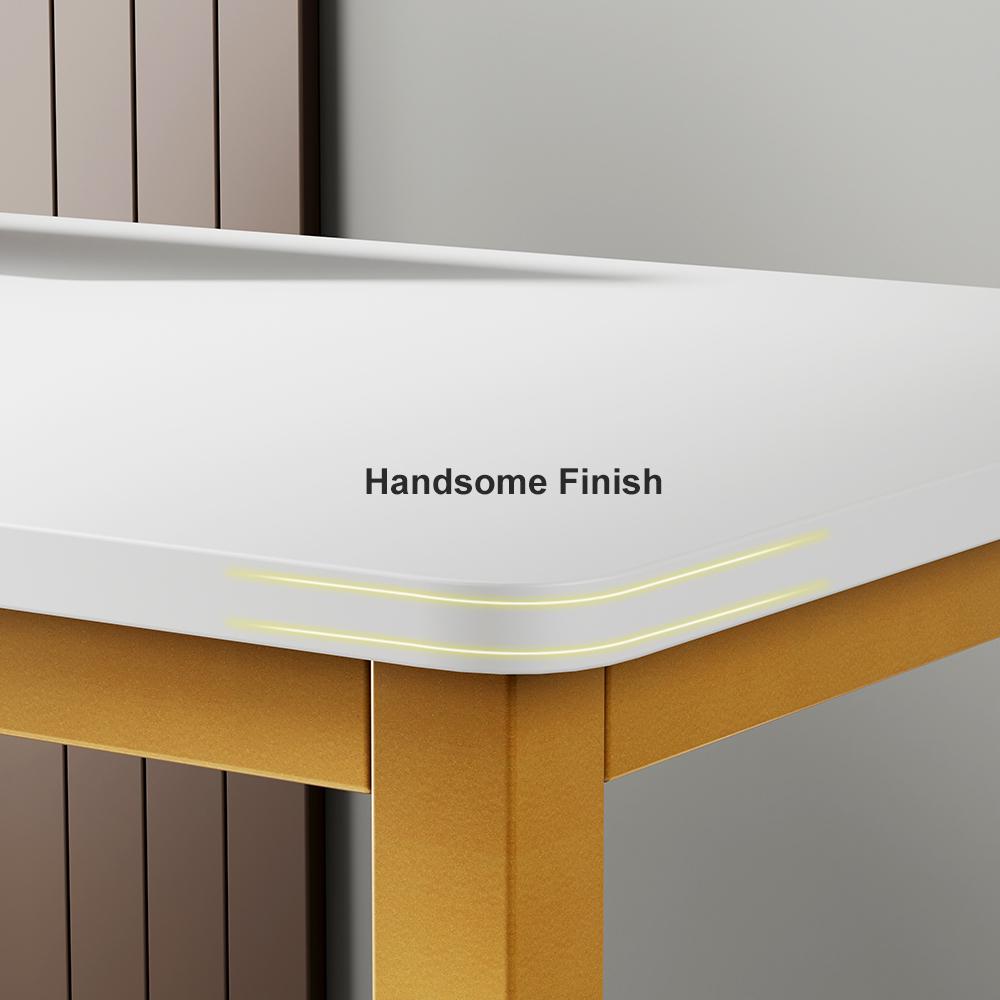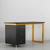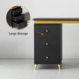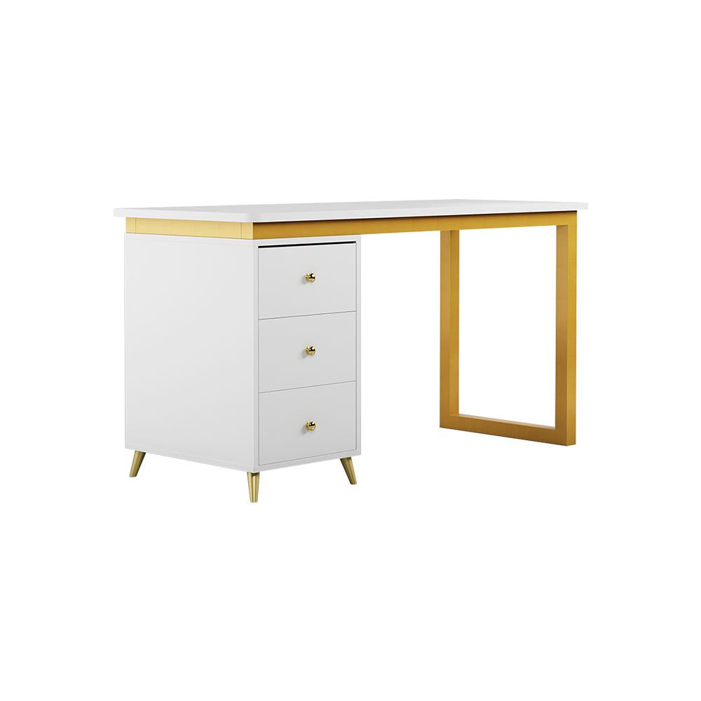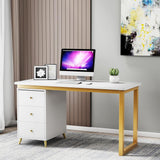 Modern 55" Wooden Home Office White Computer Desk with 3 Drawers & Side Cabinet in Gold