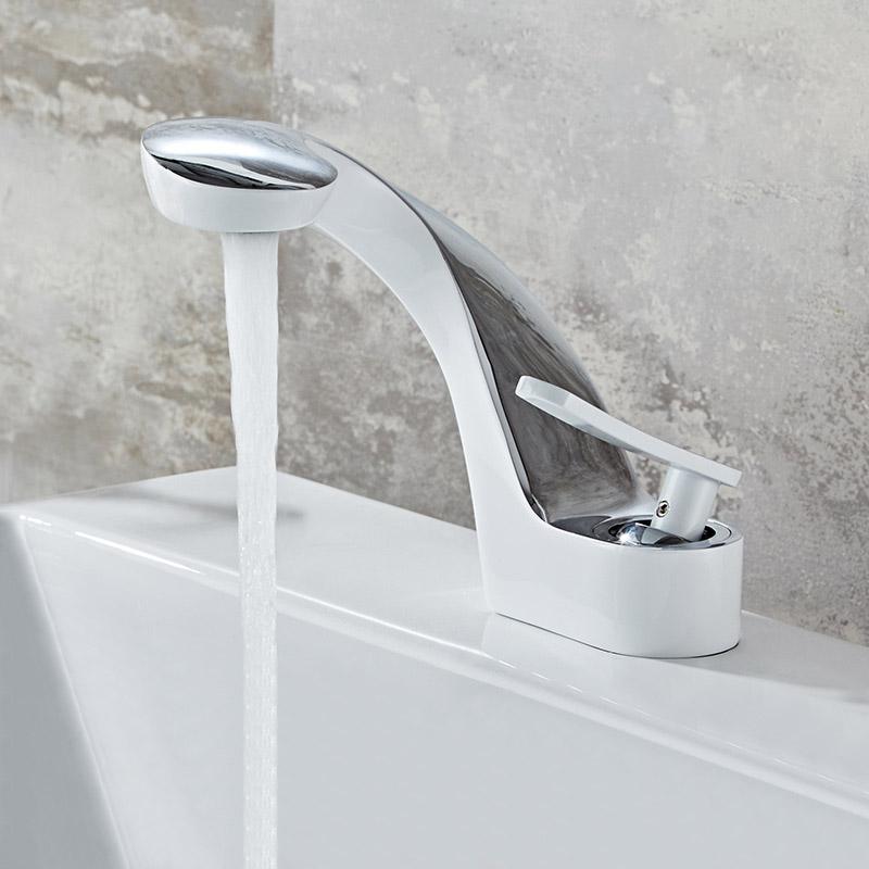 Build your modern bathroom with this distinctive bathroom sink faucet. Featuring mesmerizing design with curve details, this faucet enjoys a creative body that manifests the aesthetic charm of geometry. Paired with aerator spout, it delivers ample, splash-free water to make any washing a breeze. Otherwise, single flat handle controls both water temperature and volume easily and precisely, easy to use. Constructed from solid brass in white & chrome finish, it resists corrosion and tarnishing for everlasting beauty.