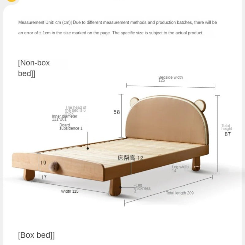 Natural wood color Oak Bear Children's Box Bed Bear soft bed