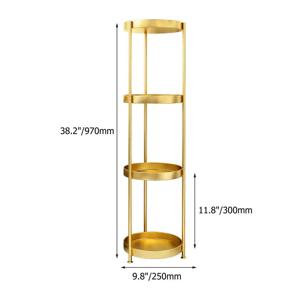 Add a addition to your living room, kitchen, bathroom with our modern shelves. This freestanding round shelving offers 4 tiers for small treasures storage and organization. This shelf is handmade from metal and finished in gold, a high quality metal used for fine furniture and easy to fits in any contemporary decor. This dynamic display space will highlight your miniature collection.
