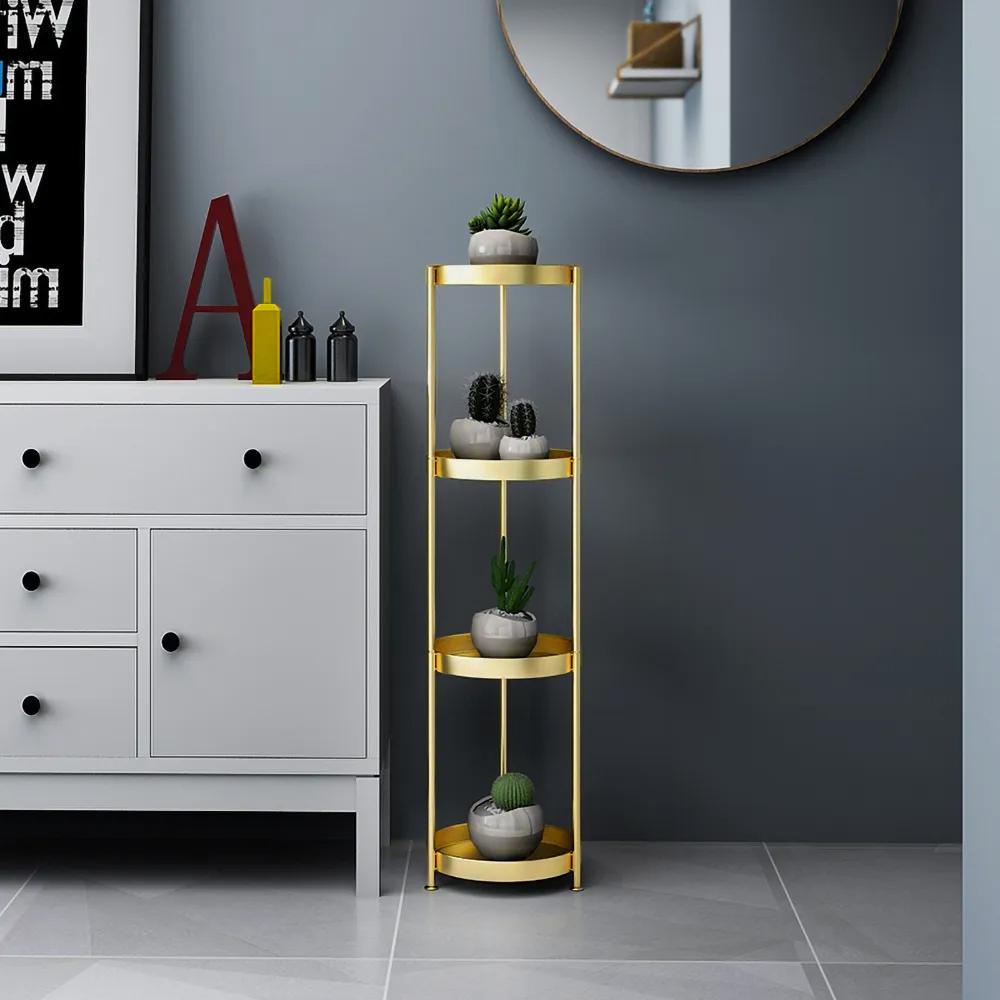 Nordic Round Metal Plant Stand Standing Plant Shelf in Gold