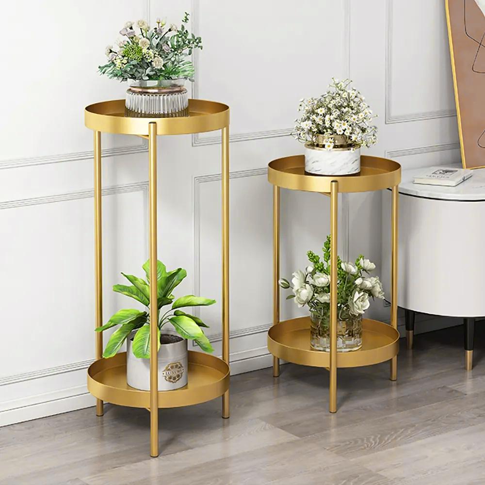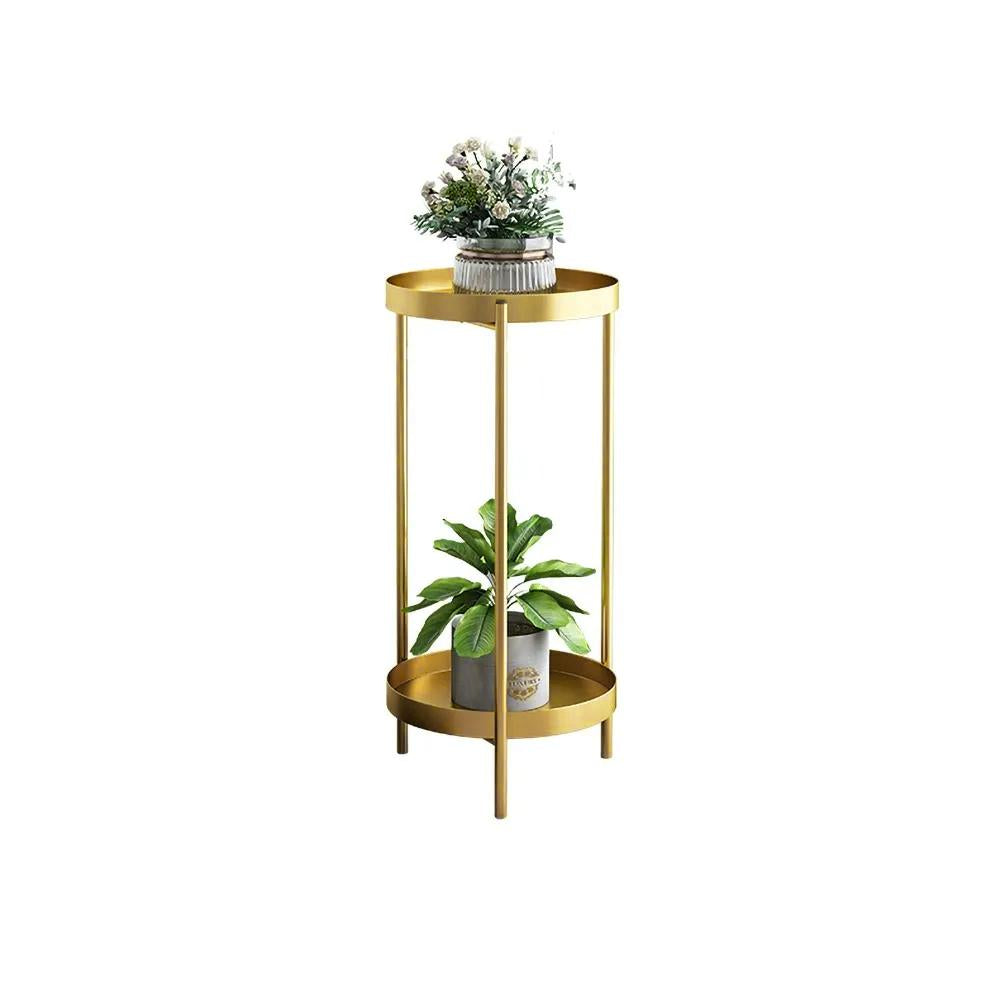 Round Metal Plant Stand 2-Tiered Gold Plant Pot Stand for Indoor&Outdoor in Small
