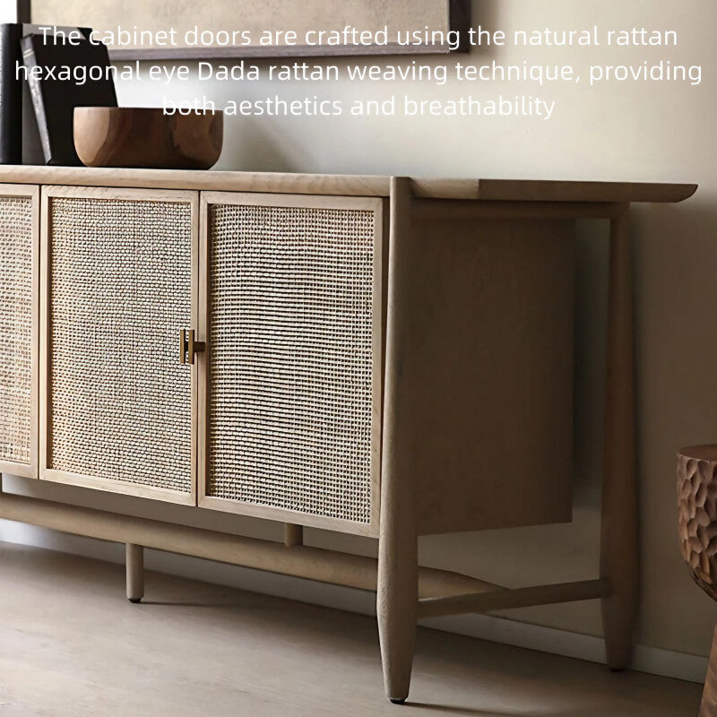 Made from North American FAS-grade ash wood, this dresser is finished with environmentally friendly clear lacquer. The exquisite texture and strong load-bearing capacity make it suitable for various settings. The natural rattan craftsmanship on the cabinet doors adds a touch of elegance to any room.