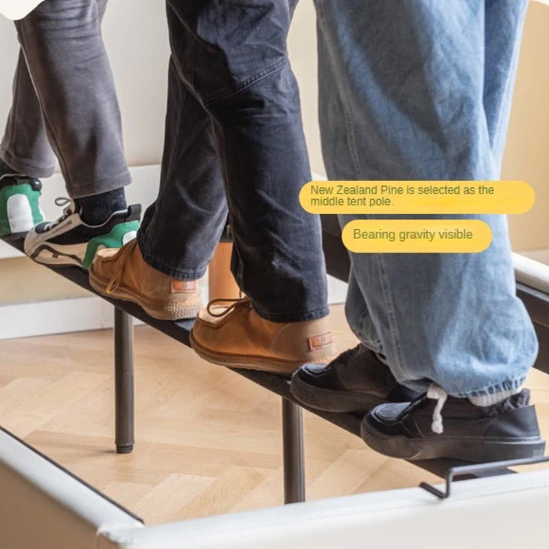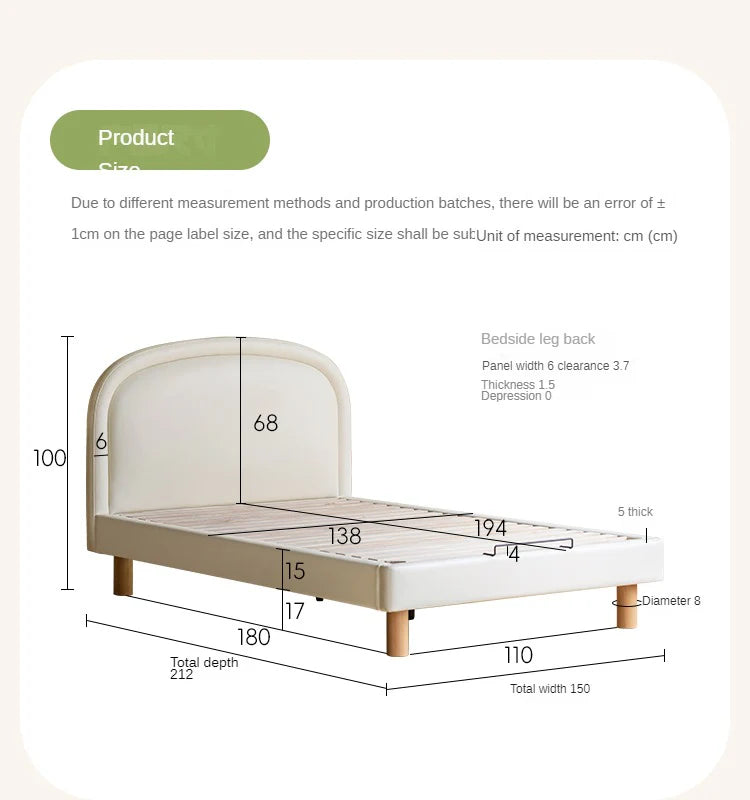 The headboard is filled with high-quality sponge to ensure a soft touch, while the bed sides are carefully padded with 1.5cm sponge, providing a comfortable and safe environment for your child. An 8cm thick bed leg enhances stability, while anti-collision features make it a gentle companion during playtime or rest. The elevated design allows young children to confidently get in and out of bed without the fear of accidents.