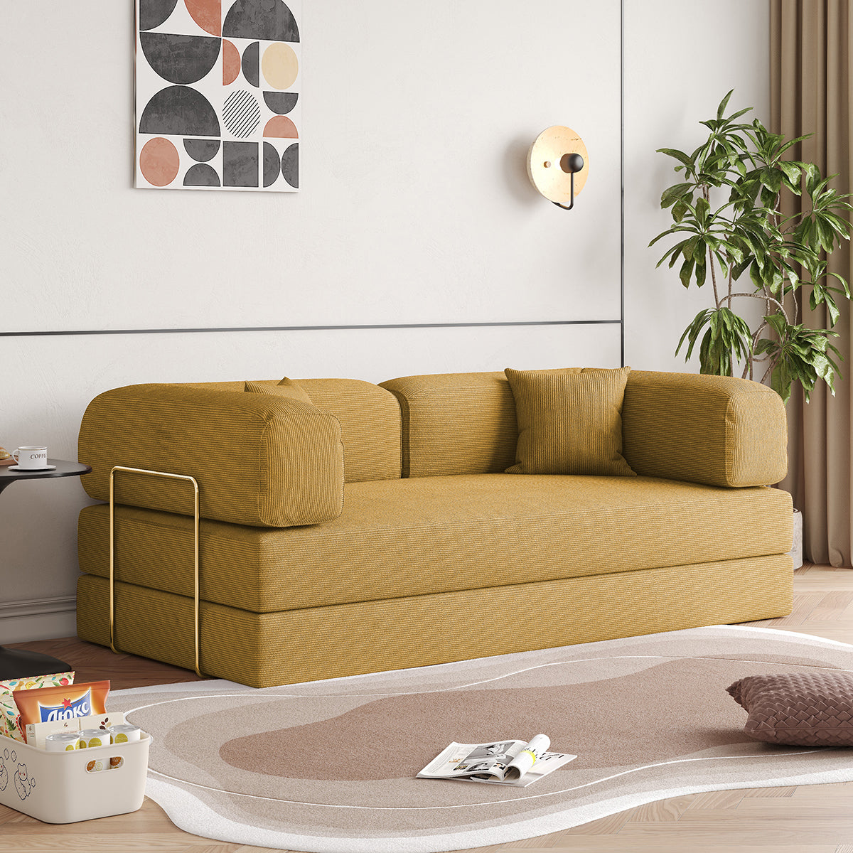 Introducing the WEHOMZ Corduroy Convertible Sofa Bed, a revolutionary piece of furniture designed to cater to contemporary lifestyles with its seamless blend of coziness and utility. This sofa bed stands out with its luxurious corduroy upholstery, available in an array of soothing colors like brown, beige, green, blue, and yellow, perfectly complementing any modern decor. Encased within is a dual-layer comfort system, featuring a silk cotton wrap atop a core of 35D medium-density foam, offering a delightful seating experience that transitions effortlessly into a restful sleep space.