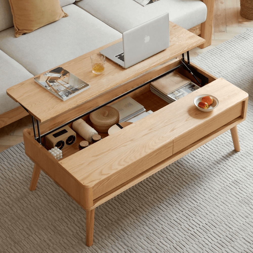 Embrace flexibility in your living space with our innovative lift top design. The table effortlessly transforms from a sleek coffee table into a functional dining or work desk, standing at a comfortable height of approximately 65cm when elevated. This feature is particularly beneficial for those who enjoy working or dining on the sofa, offering ease and preventing back strain.