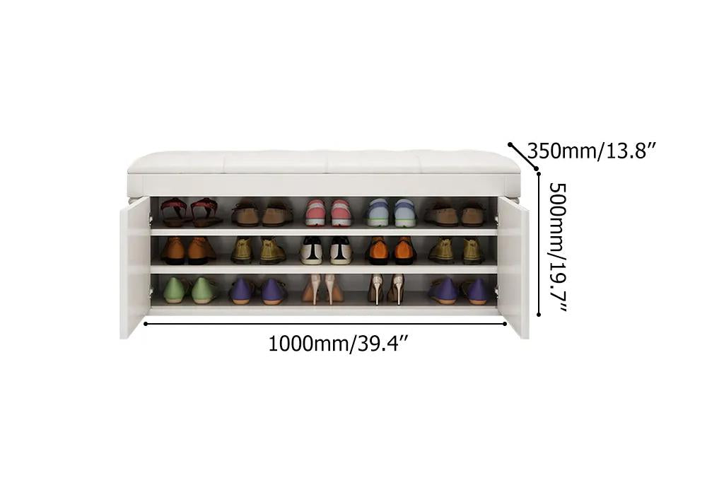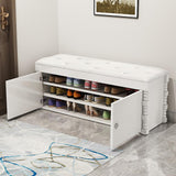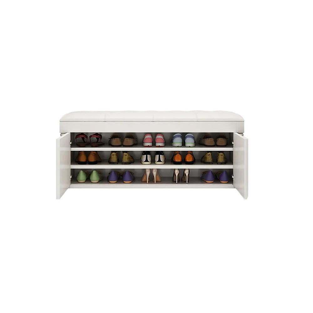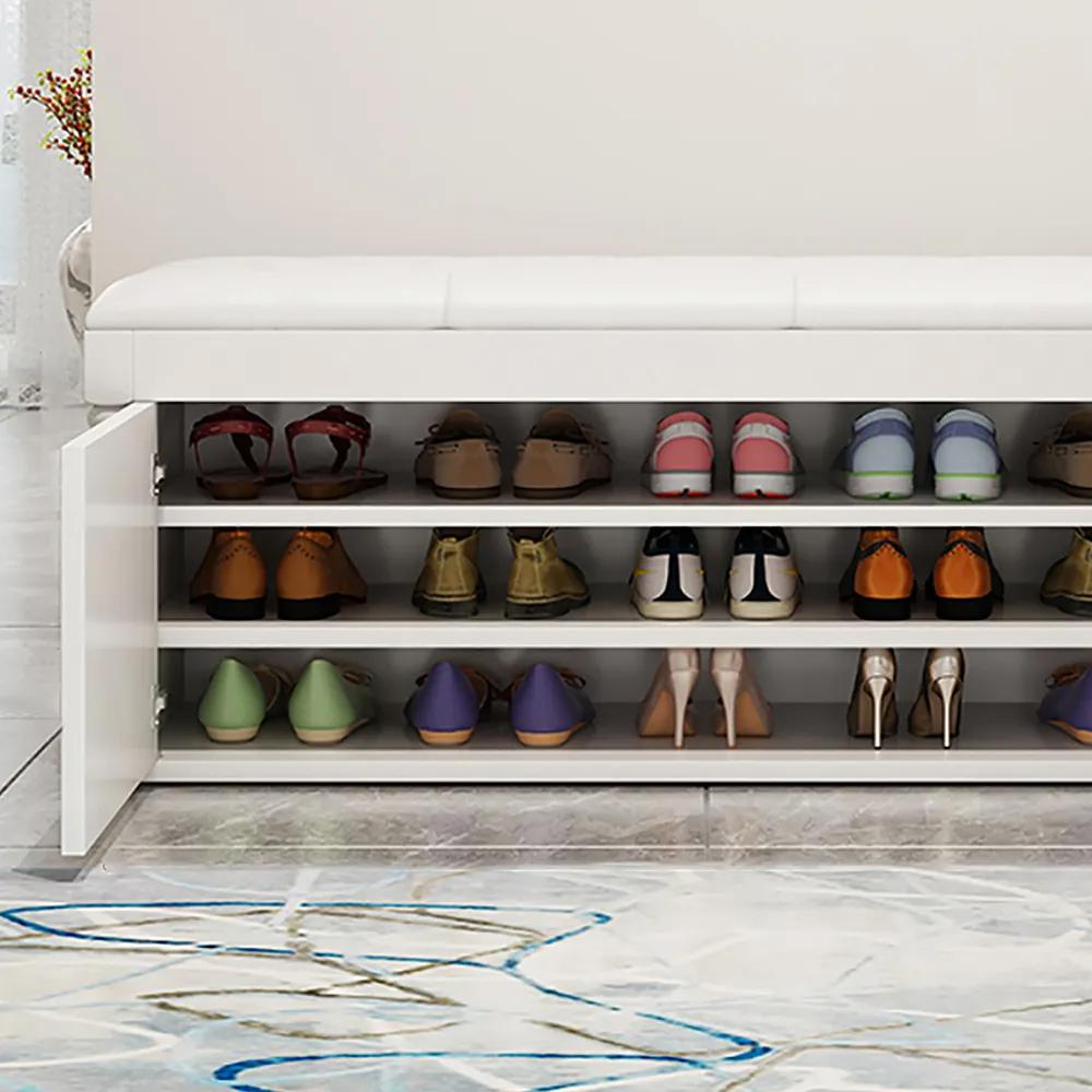 White Contemporary Upholstered Shoe Rack Bench with Storage Cabinet and Shelf Entryway - White