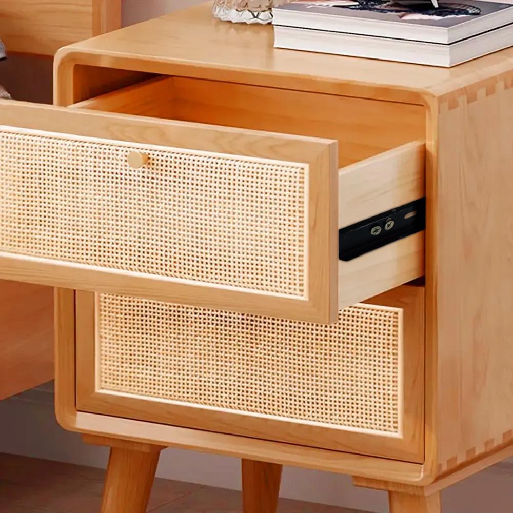Nordic Natural Rattan Nightstand Solid Wood Bedside Table with 2 Drawers