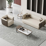Modern Off-White & Brown Sofa for 3 Seaters Microfiber Leather Upholstery Rectangle