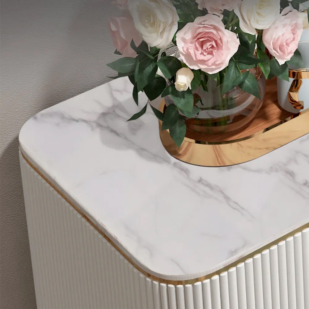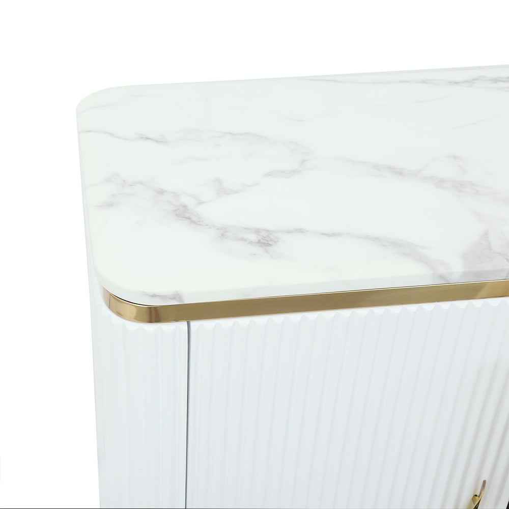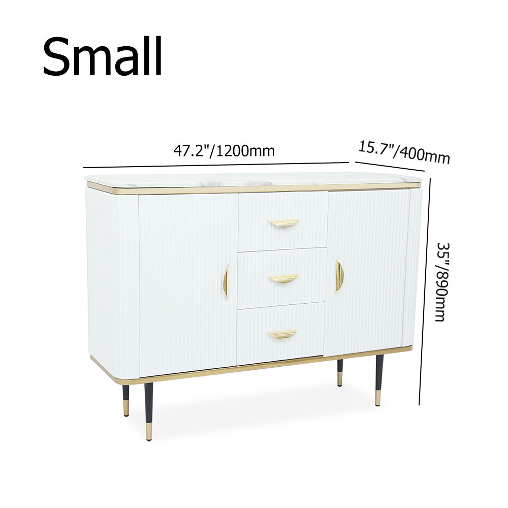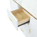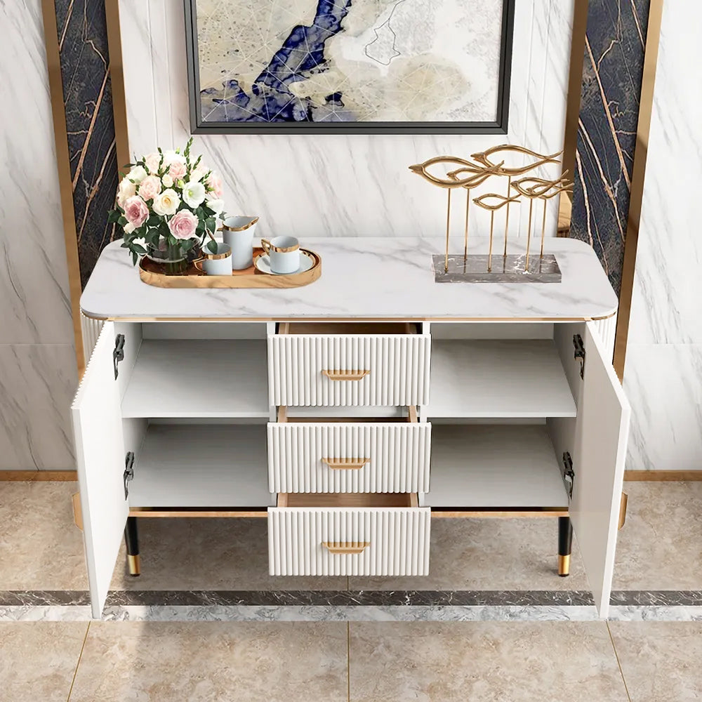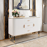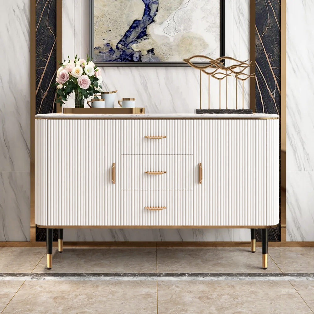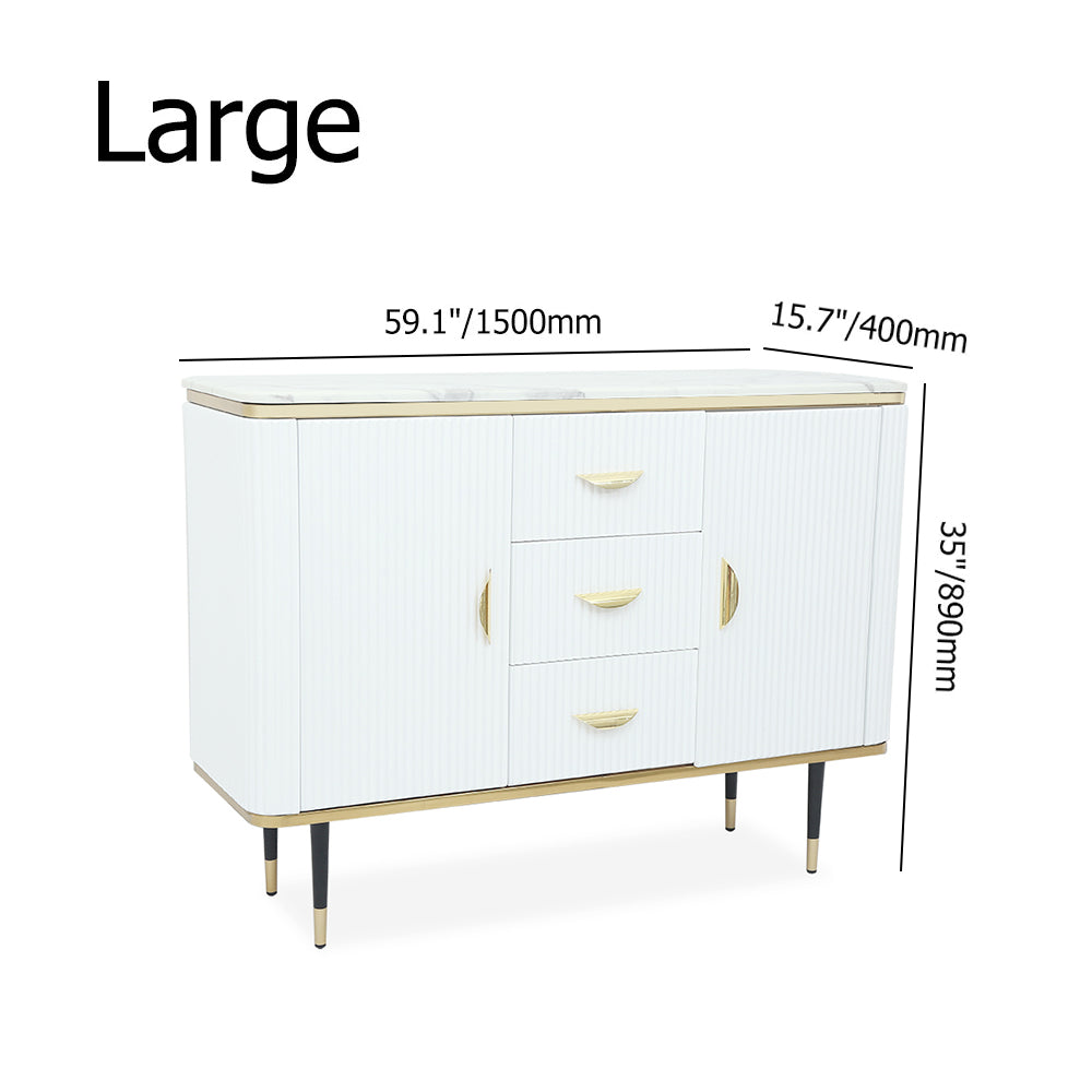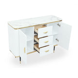 59" Modern White Sideboard with 3 Drawers & 2 Doors and Faux Marble Top in Large