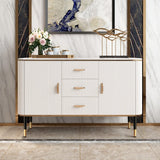 55.1" White Modern Sideboard with 3 Drawers - 2 Shelves - Doors Included - Black Walnut - White