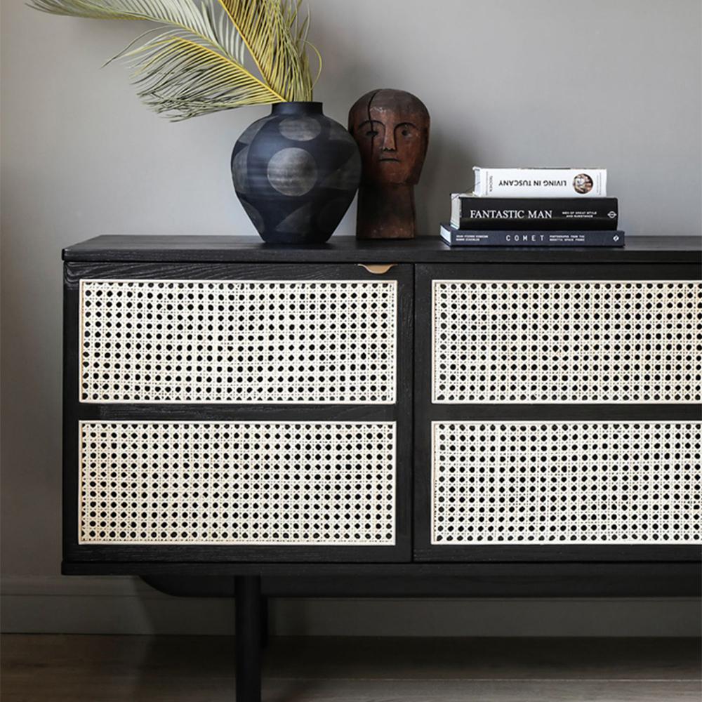71" Rattan Dresser with 4 Drawers - Black Nordic Style - Black