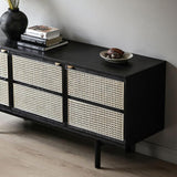 59" Rattan Dresser with Shelves and Doors - Black Japandi Style - Black