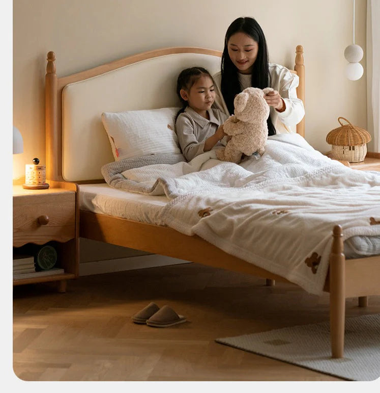 Every baby deserves to feel like a princess, and our exquisite Beech and Oak Solid Wood Princess Bed does just that. Designed with love and care, its striking arched headboard features a playful "smile" curve that echoes throughout the room, reminiscent of a Pandora's box that gently cradles your child. This enchanting piece transforms any nursery into a whimsical kingdom, ensuring your little one feels cherished.
