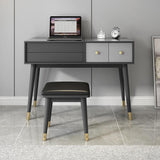 Modern 2-Drawer Wood Makeup Vanity Set with Mirror & Stool X Base Stainless Steel in Gold