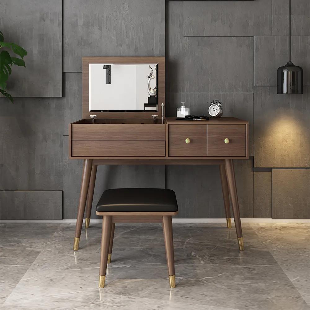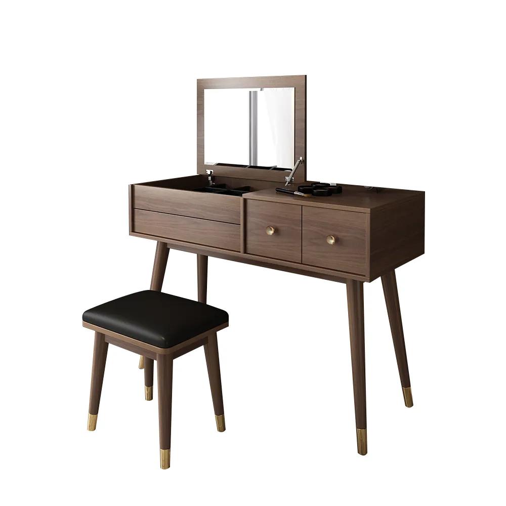 2 Pieces Minimalist Makeup Vanity Set in Walnut with Mirror & Stool - Walnut