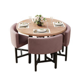 40" Round Wooden Small Dining Table Set of 4 Pink Upholstered Chairs for Nook Balcony