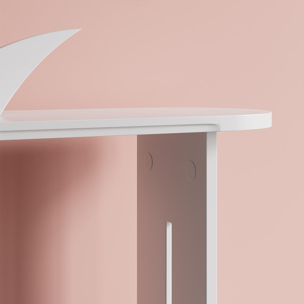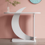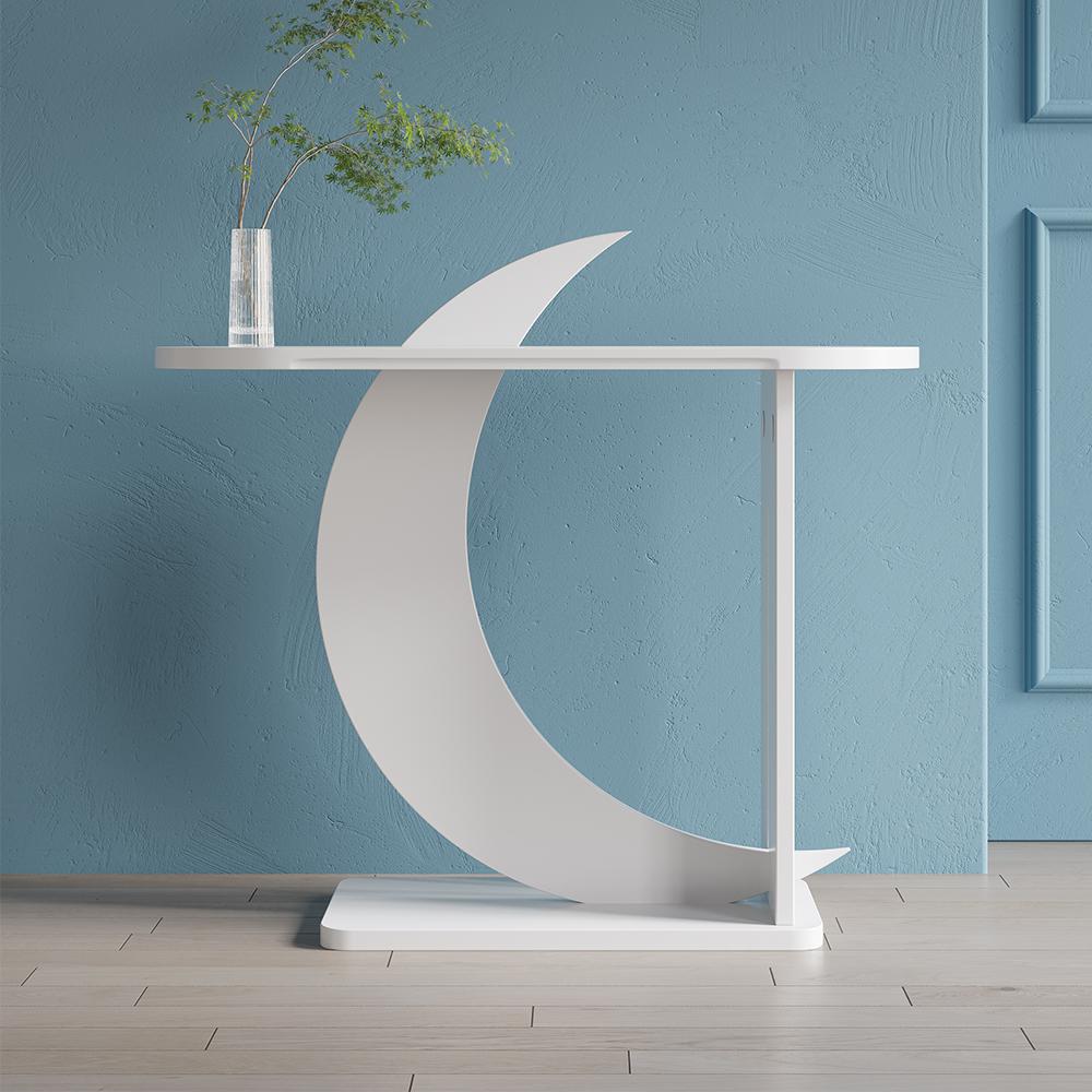39.4" White Moon Shape Console Table Rectangular Wood Entryway Table with Abstract Base