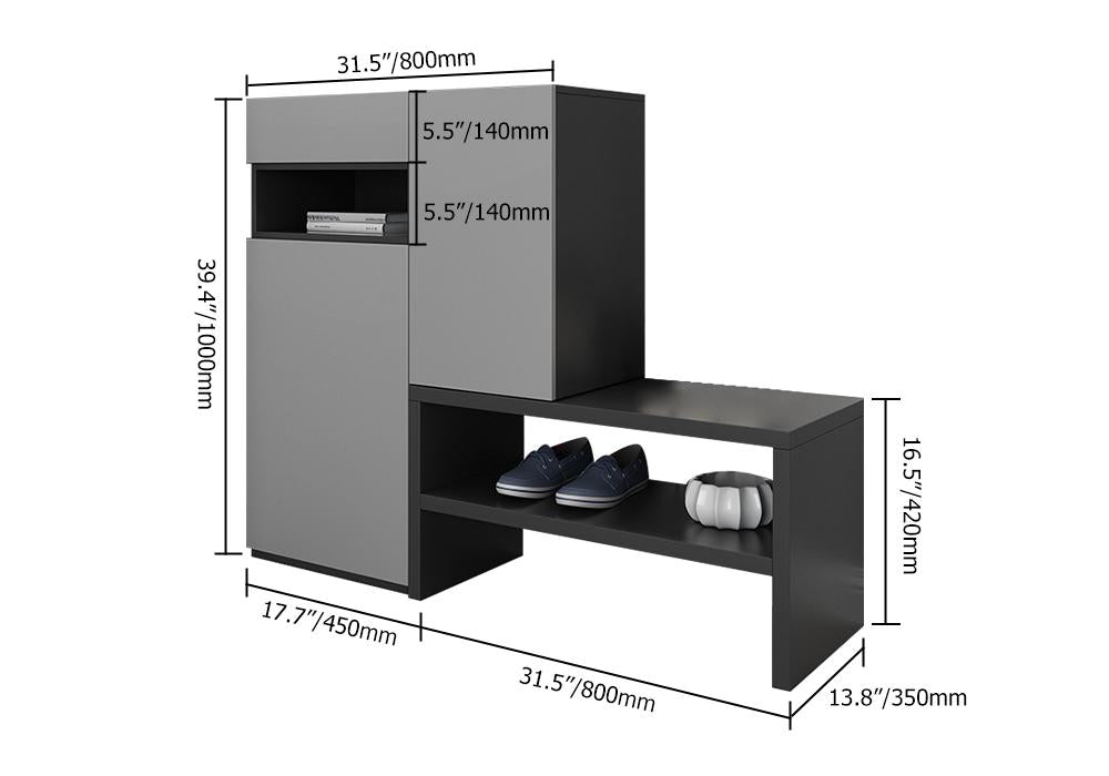 - The side-shelf can be a shoe bench, and the open bottom also provides extra space for placing shoes.
