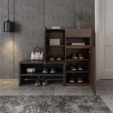 Walnut Upholstered Shoe Storage Cabinet with Door & Shelf Entryway Shoe Storage Bench