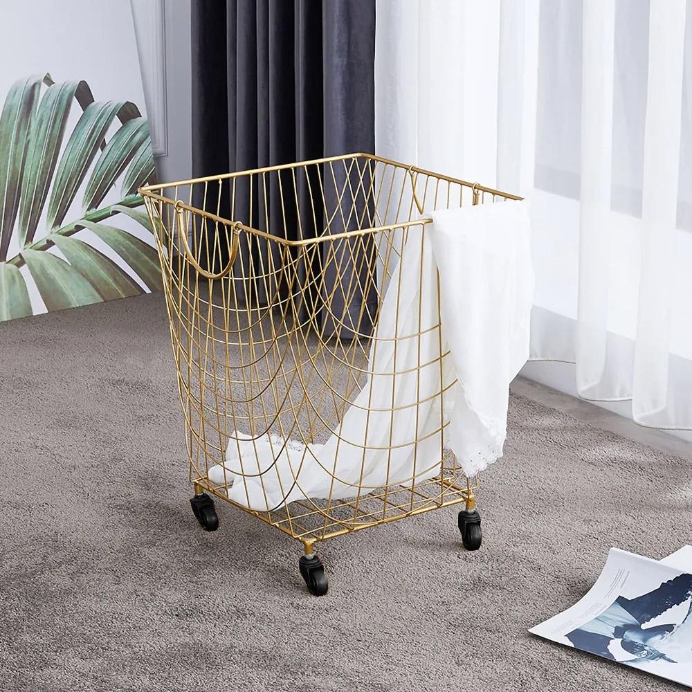 Add an addition to your living room, bedroom, and bathroom for clothes storage. Constructed from metal and smooth surface finished in gold, this laundry hamper comes with a square shape and 4 rolling wheels. Large capacity is one of its distinguishing features, convenient to move, and can fits in any contemporary decor easily. An easier way to organize your home!