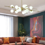 Modern 12-Light Glass Globe Sputnik Chandelier in Brass for Living Room and Bedroom