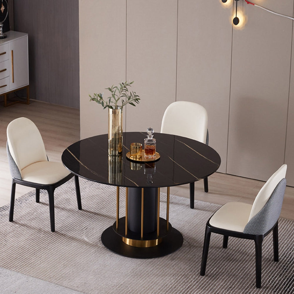 Round Dining Table Modern Black Marble Dining Table Stainless Steel Base