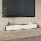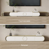 Modern Extendable Oval Metal TV Stand with 4 Drawers in Gold & White for TV up to 120"