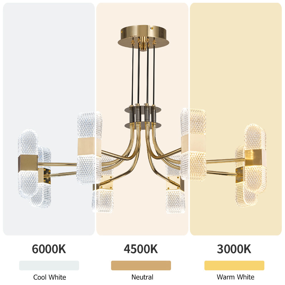 Modern 6-Light Acrylic LED Gold Sputnik Chandelier for Living Room
