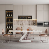 Modern Extendable Marble Dining Table 4-8 Seats Rectangle Sintered Stone Top & Carbon Steel Legs - White & Black