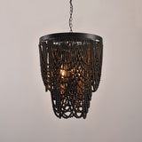 Rustic Farmhouse Dark Brown Wooden Draped Bead 3-Light Chandelier