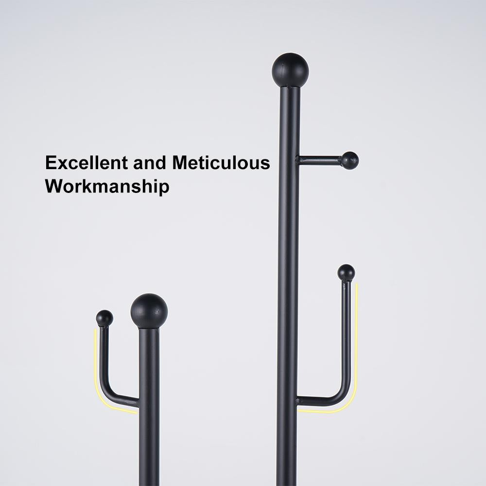 With this modern and stylish metal coat rack, folks can use the underutilized spaces. This coat rack with 7 ball-shaped hooks made of metal with a gold/black coating is excellent stuff for preserving the house organized. Keeping the everyday items neatly stored and within easy reach is made simple with this storage coat rack.