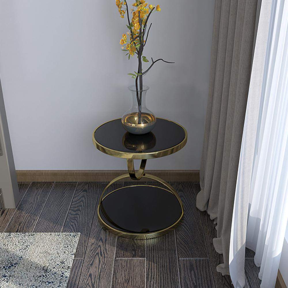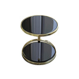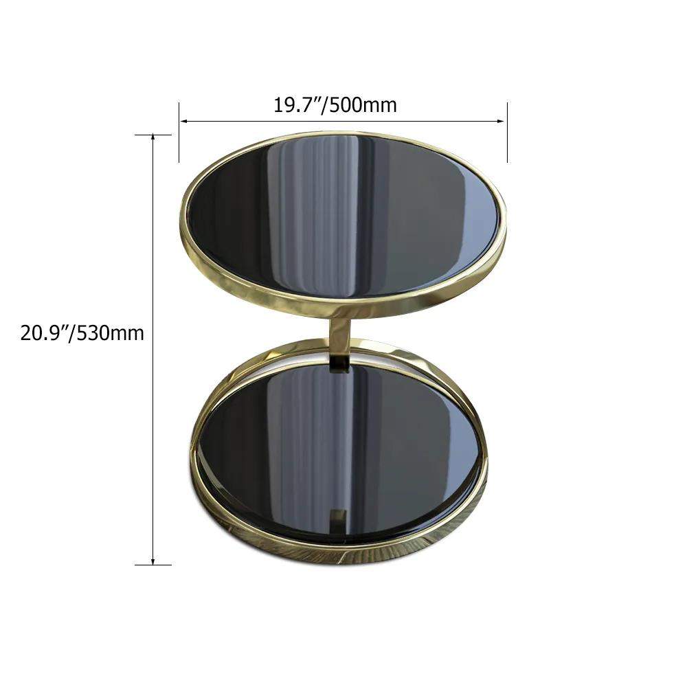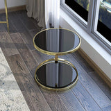 Black Round Side Table Tempered Glass with Storage End Table in Gold