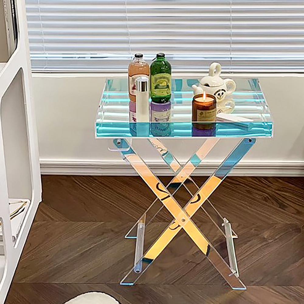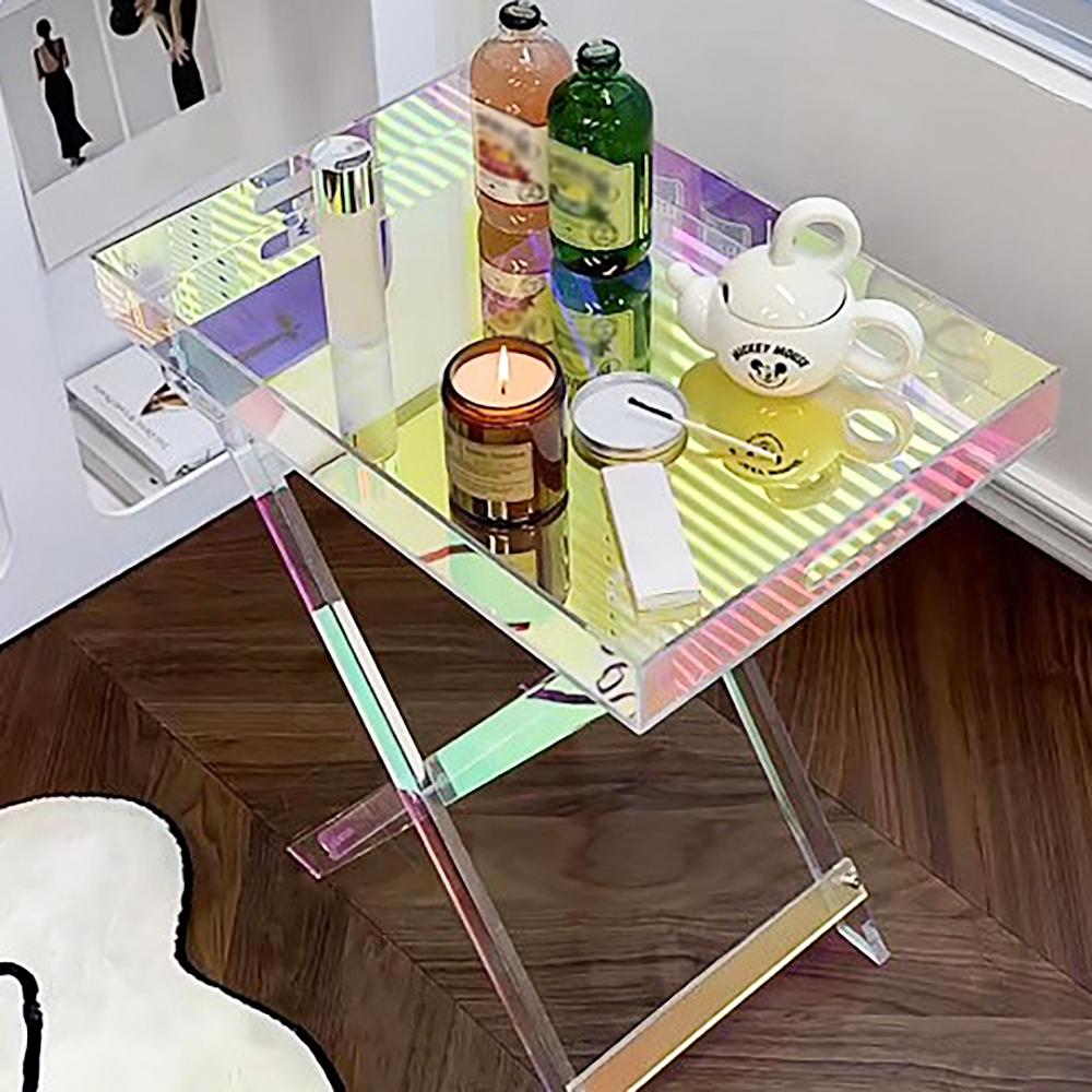 Modern Acrylic Folding Side Table Clear Square Iridescent End Table