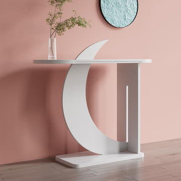 39.4" White Moon Shape Console Table Rectangular Wood Entryway Table with Abstract Base