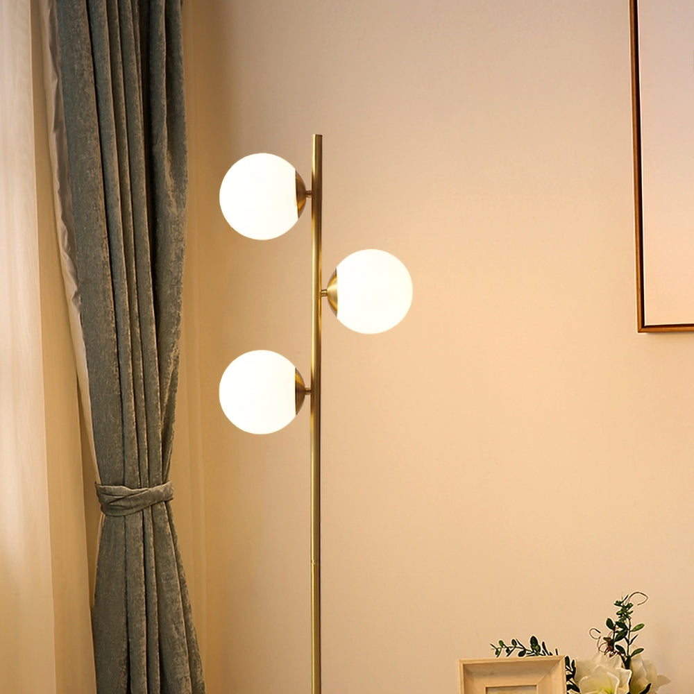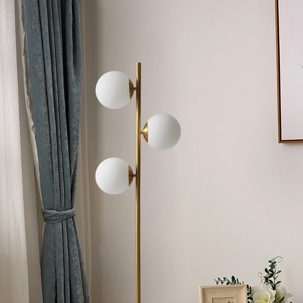 Dress your home with this modern luxurious floor lamp. Carrying 3 white globes, this floor lamp will give a stunning and graceful appeal to any home. The combination of marble base and white glass lamp shade give it a sophisticated but modern look. The premium material and gold finish not only enhance a sleek and modern touch but ensures a long-lasting use. Available in 3 lights, it is a perfect addition for your living room, bedroom, foyer and more.