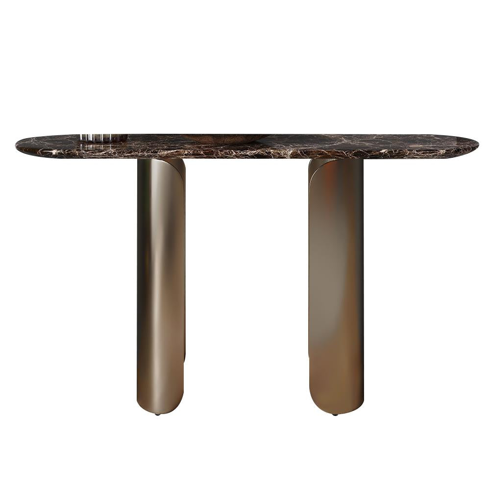 Create a elegant and inviting ambiance in your home with this console table. Crafted from stainless steel and marble, and the smooth tabletop offers a spot for your framed family photos, potted plants, and artful accents. A perfect entryway addition to provide a storage area for keys and wallet, or display any decorative items to add simple but luxurious charming appeal. Simple yet tasteful, this modern console table will bring any space up to date.
