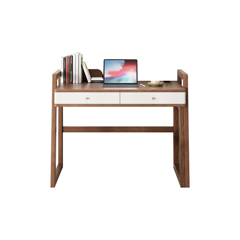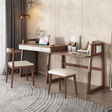 Modern I Shaped Desk Retracted & Extendable Corner Walnut Desk with Storage & 2 Drawers