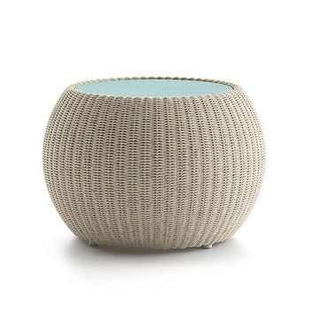 24.4" Rattan Glass-Top Khaki Coffee Table Side Table