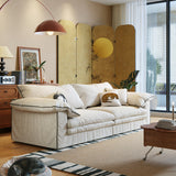 Cotton Linen Beige Sofa with Underseat Storage & Solid Wood Frame - Beige